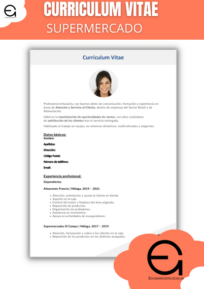 Descargando cualquiera de estas plantillas podrás tener acceso a una plantilla de curriculum vitae para empresas del sector de los supermercados acorde a la oferta de empleo.